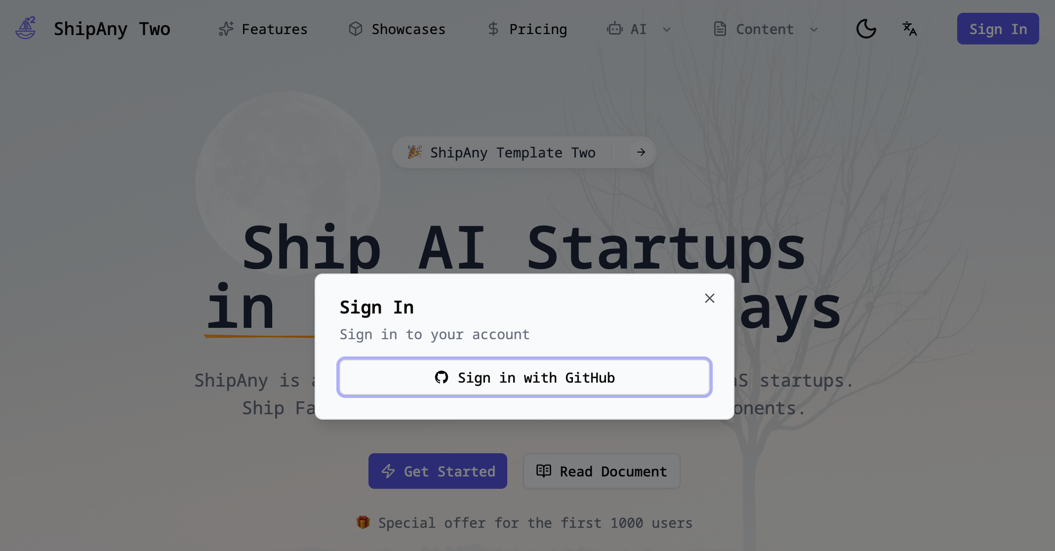 进入项目主页,刷新页面,点击右上角的 登录 按钮,即可看到 Github 登录入口。
