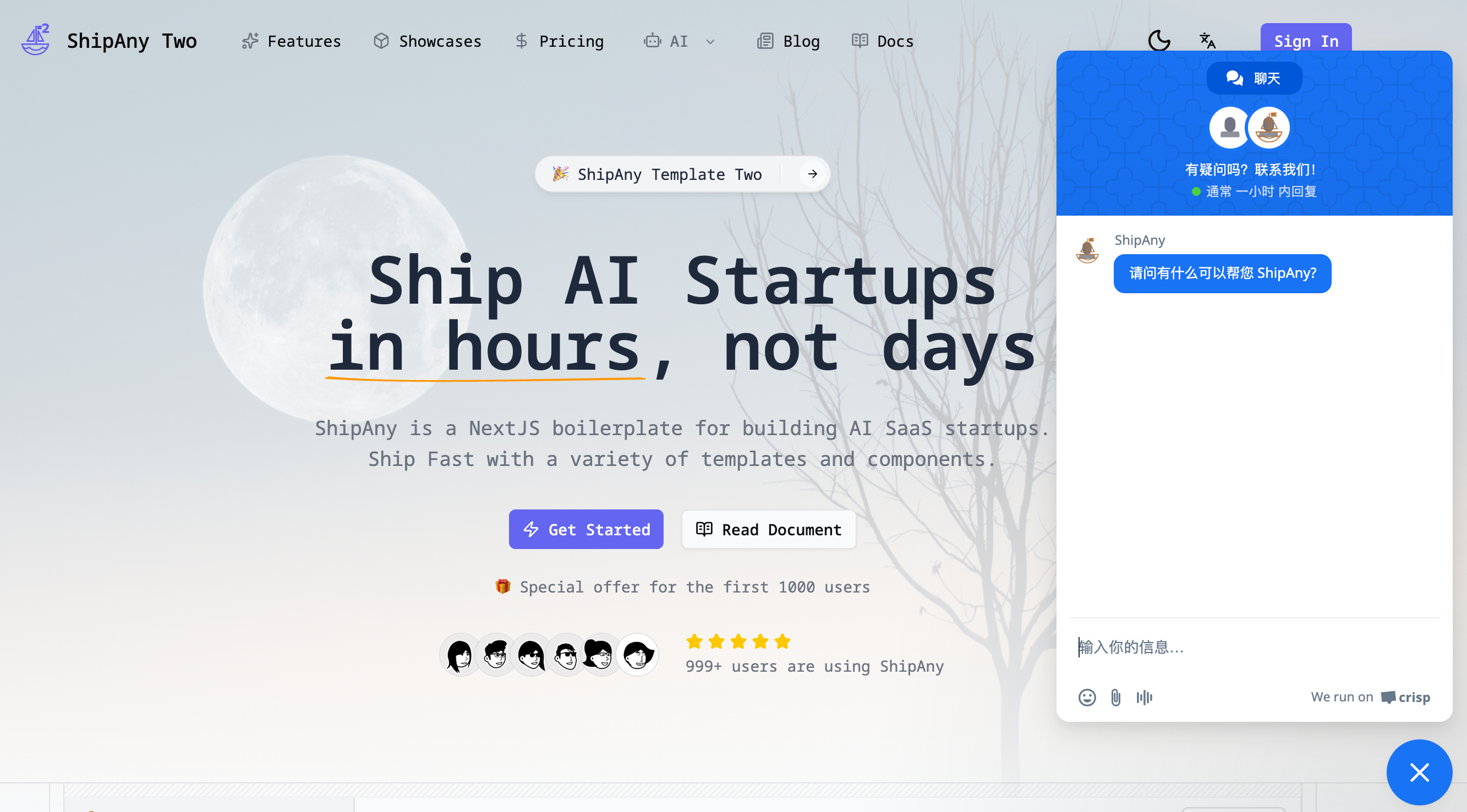 ShipAny 集成了 Crisp 客服系统,简单配置即可在你的网站接入网页客服组件。