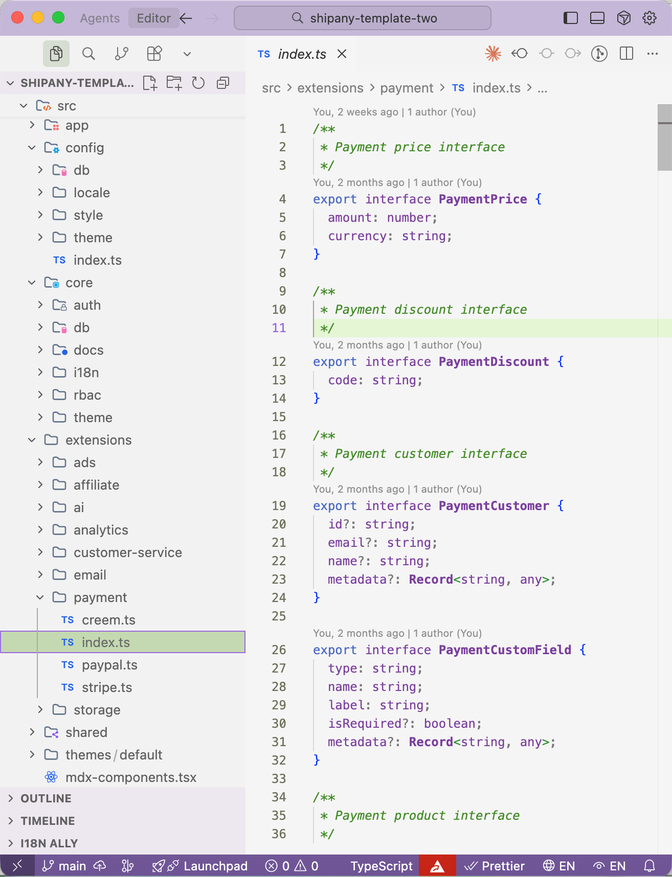 ShipAny 利用 extensions 支持可插拔架构,每一类扩展定义一个统一的 interface,每个扩展按接口实现具体的功能逻辑。目前支持的 extensions 包括