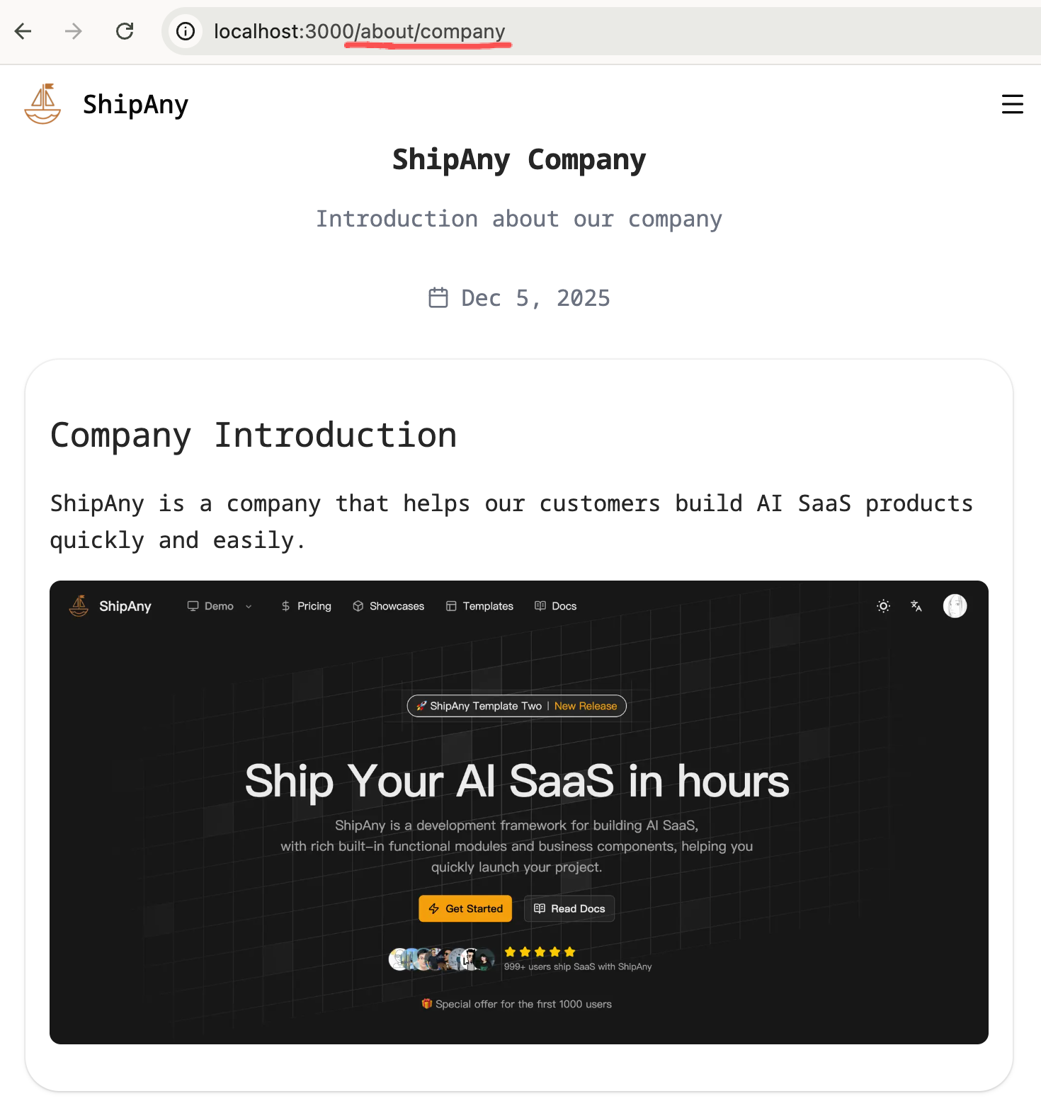 ShipAny 支持静态页面构建,无需编写代码,只需一个 Markdown 文件,即可渲染一个静态页面。